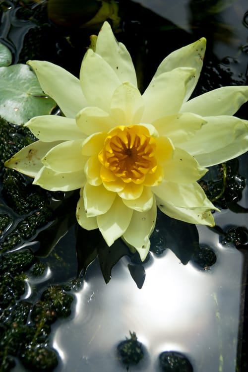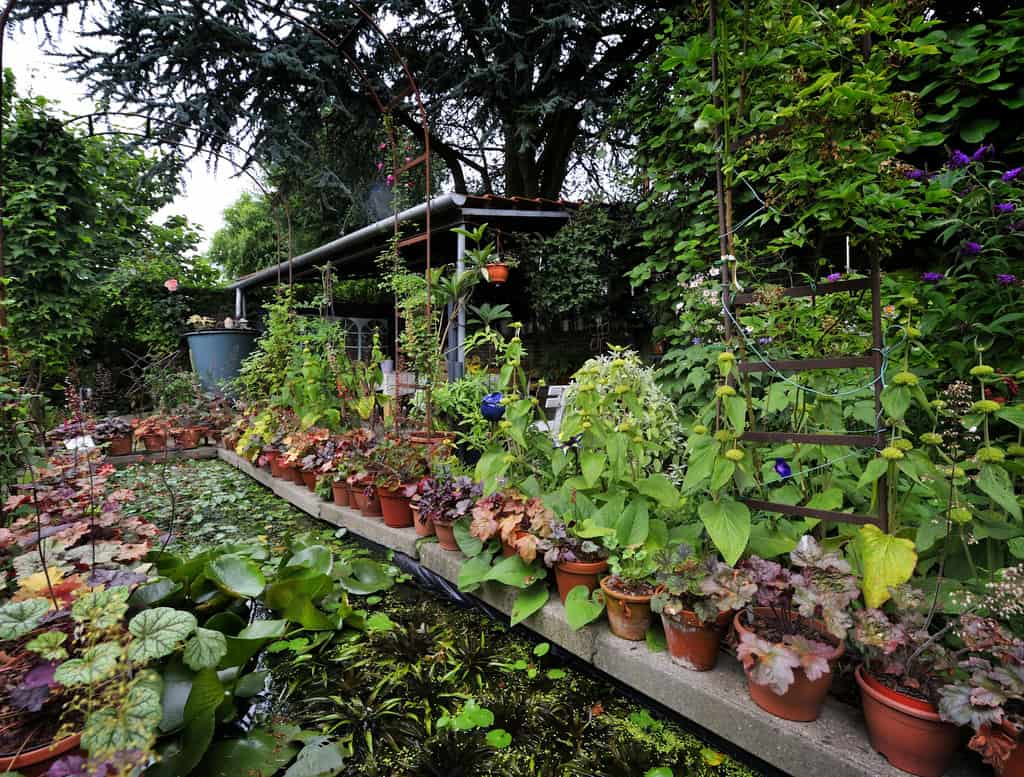 planten in allerlei soorten, maten en kleuren. En van de vijvers waar de kikkers