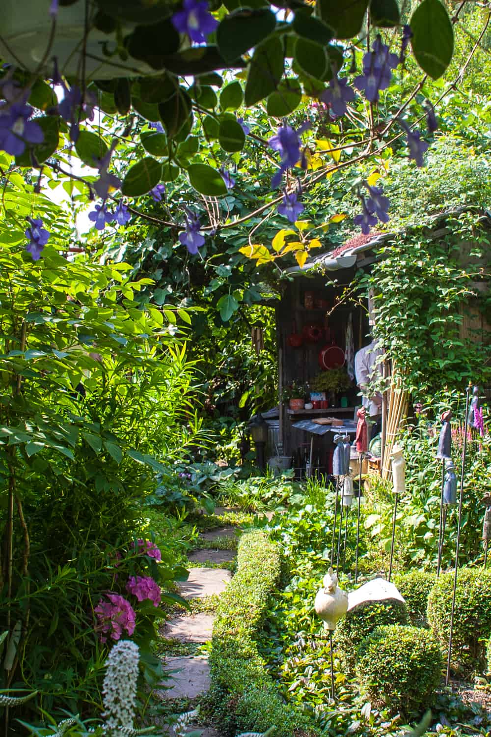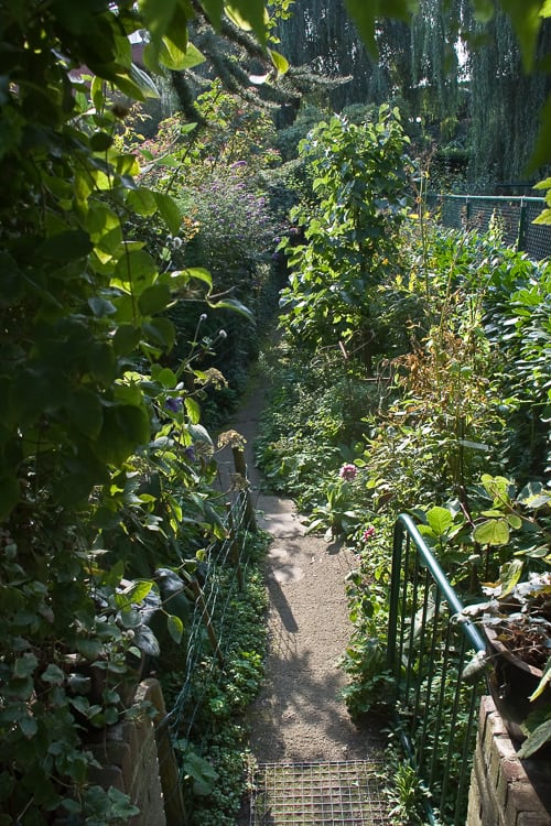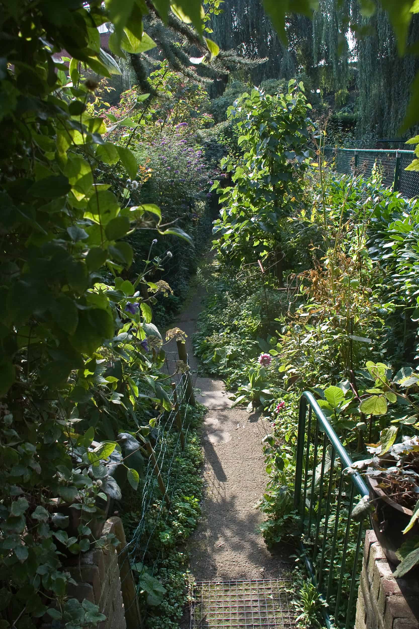over de diepe tuin achter hun huis. Een cottage-tuin, ingericht met kamers vol